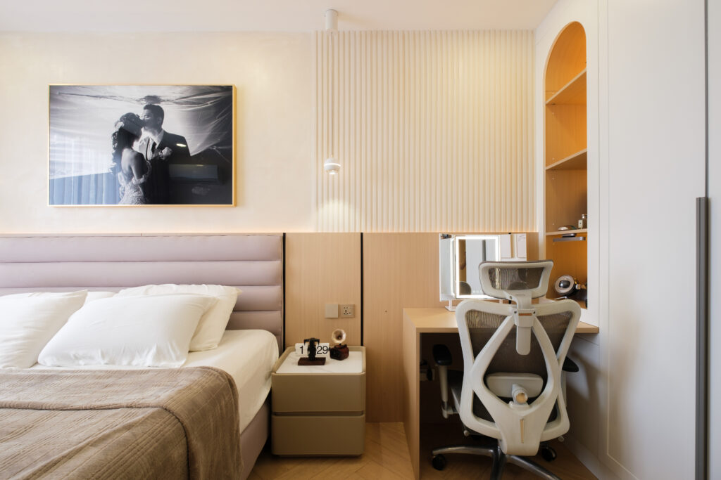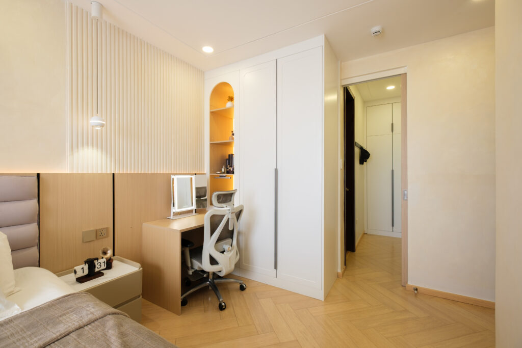 The four bedrooms of this condo demonstrate the versatility of modular wardrobes. Three of the rooms reused their existing wardrobes from 2019, proving the durability and timeless quality of CXF Design Center’s modular cabinet systems.
